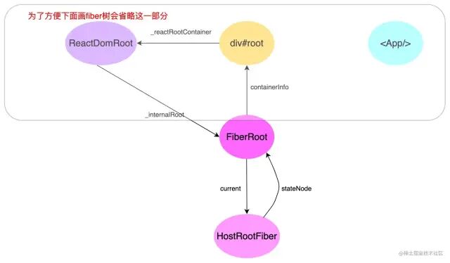 在进入react-reconciler包之前, 也就是还没render时, 内存状态图如下,和上面启动过程的图对应: