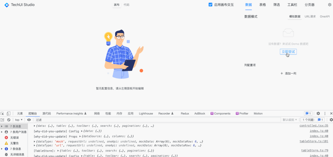 在上图中可以看到,虽然 tabs、internalSetState 没有变化,但是其中的 config 数据项(data、columns 等)发生了变化,进而使得 TableConfig 组件触发重渲染。