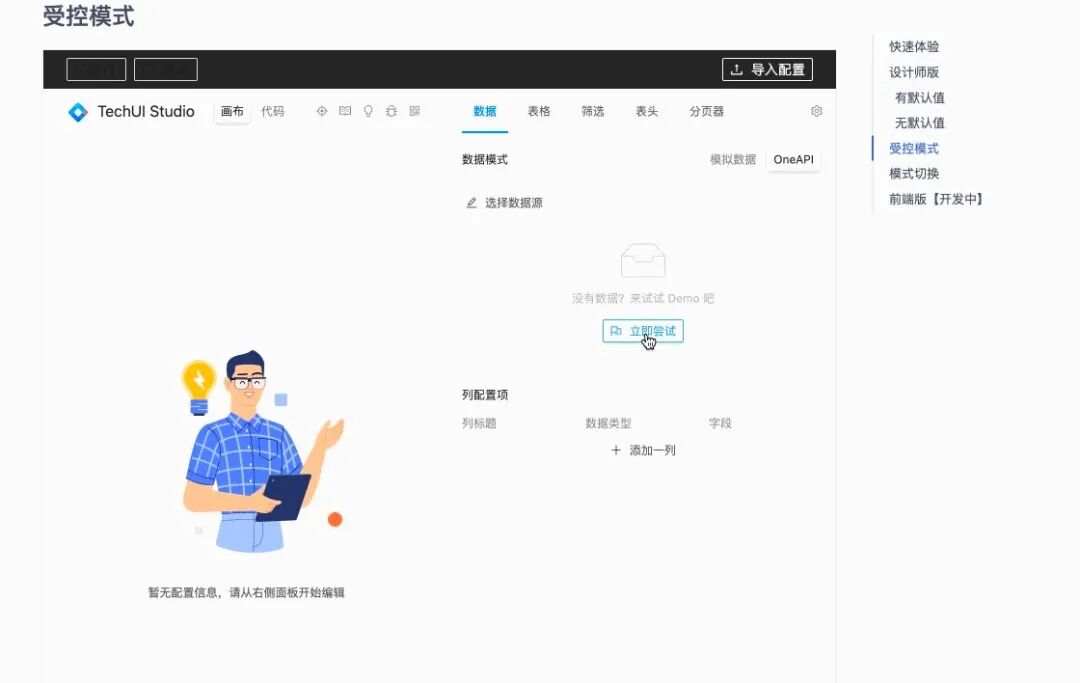 // ProEditor 外部消费的 Demo 示意export default () => { const [status, setStatus] = useState(); const { config, getState } = useState(); return ( <ProEditor // config 和 onConfigChange 是一对 config={config} onConfigChange={({ config }) => { setConfig(config); }} // interaction 和 onInteractionChange 是另一对受控 interaction={status} onInteractionChange={(s) => { setStatus(s); }} /> );}但当我们一开始写好这个受控 api,得到结果是这样的: