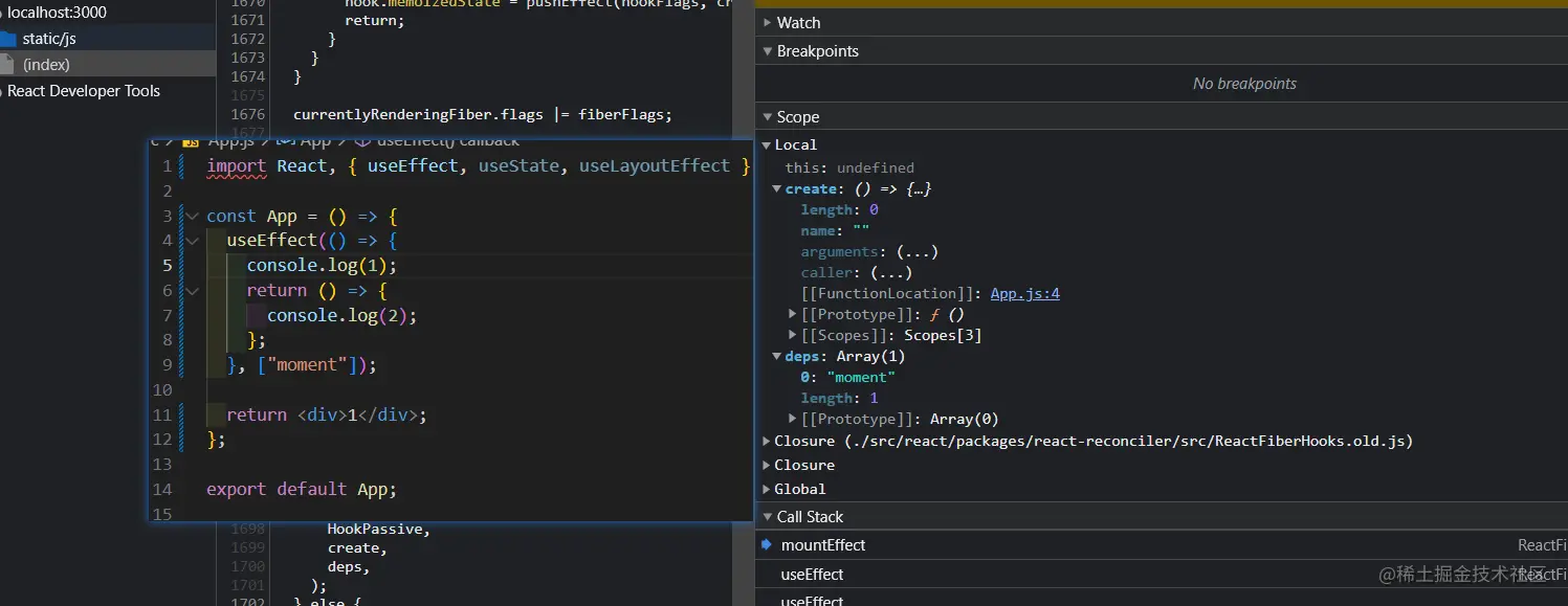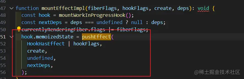 接下来我们看看 mountEffect 这个函数, 具体代码如下所示: