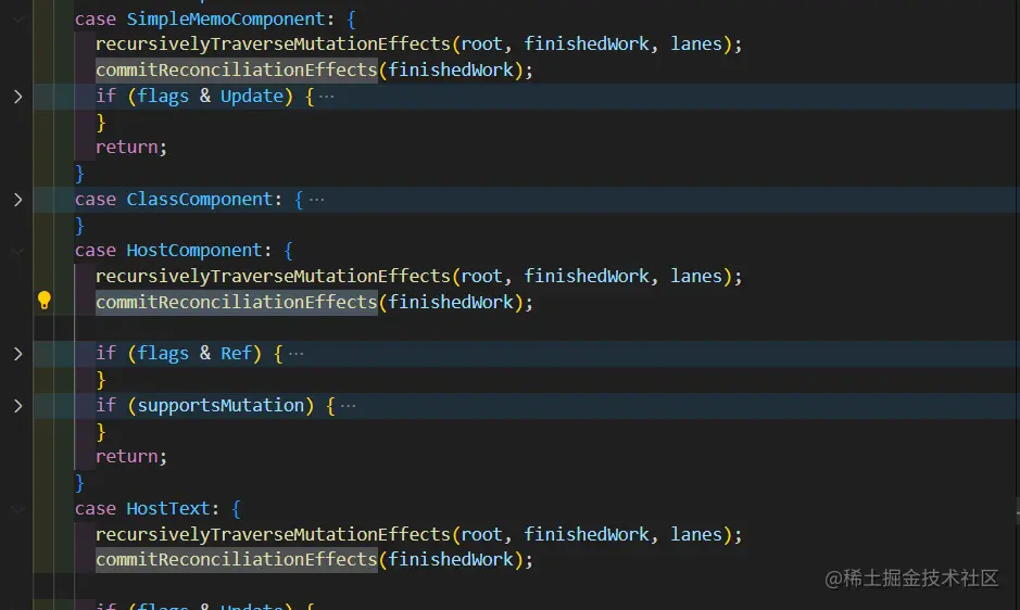 - 遍历 fiber 树中的节点, 从 nextEffect 开始,直到遍历完所有的节点;