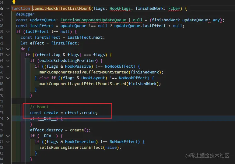 create()函数也就是我们使用useEffect中传入的第一个回调函数了, 会在这个阶段执行。