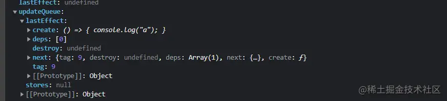 const lastEffect = updateQueue !== null ? updateQueue.lastEffect : null;