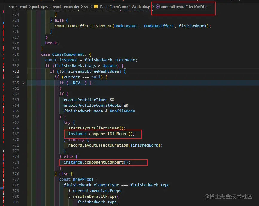 在 commitLayoutEffectOnFiber 函数中依然是根据不同的组件类型调用不同的方法, 先来看看类组件的: