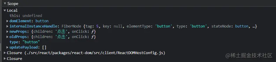 获取当前 HostComponent 节点的实例 instance, 即对应的真实 DOM 元素是否存在, 如果存在获取当前节点的新属性 newProps 和旧属性 oldProps。