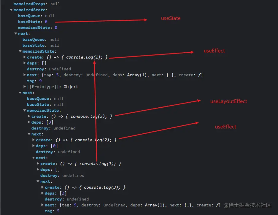 });在这个函数里, 先执行所有 useEffect 的 destroy 方法,然后才执行所有 useEffect 的 create 方法。并保持顺序是先子后父。