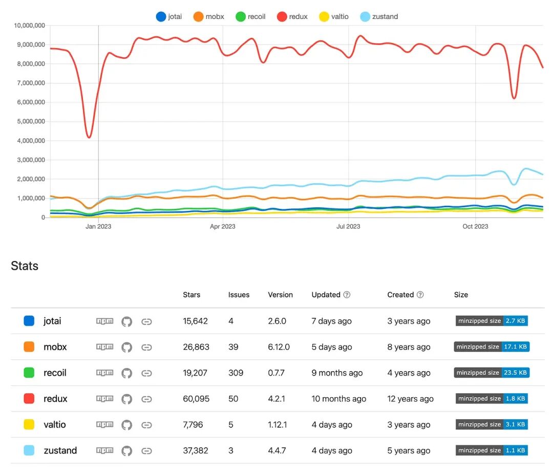 https://npmtrends.com/jotai-vs-mobx-vs-recoil-vs-redux-vs-valtio-vs-zustand