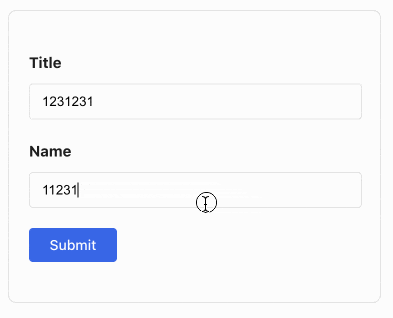 function Input2({required, name}) { const {pending} = useFormStatus() return ( <div class>Name</div> <input name={name} type="text" placeholder='Enter you name' disabled={pending} /> </div> )}<form action={formAction}> <div class placeholder='Enter title' /> </div> <Input2 required name='content' /> <SubmitButton /></form>5