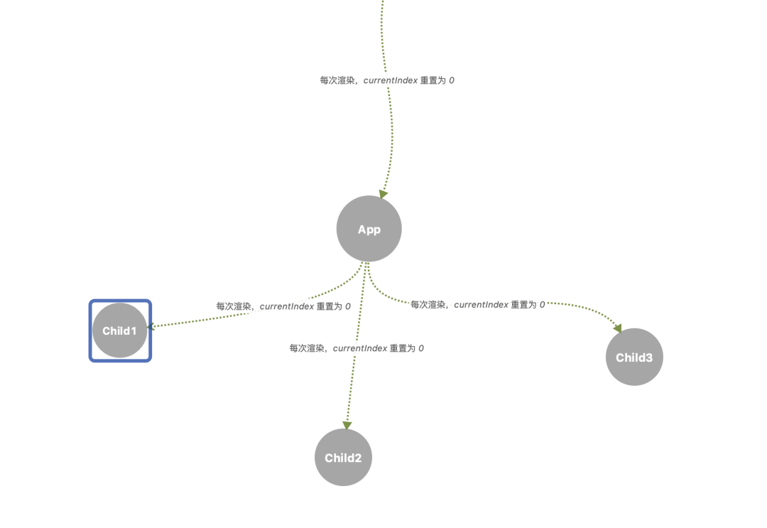 首先,我们有一个全局的 currentIndex 变量,当组件第一次渲染或者更新的时候,它会在每次进入一个函数组件的时候都重置为 0,每次遇到一个 Hook 方法就会增加 1,同时将这个 Hook 方法的信息放到 _list 里面。