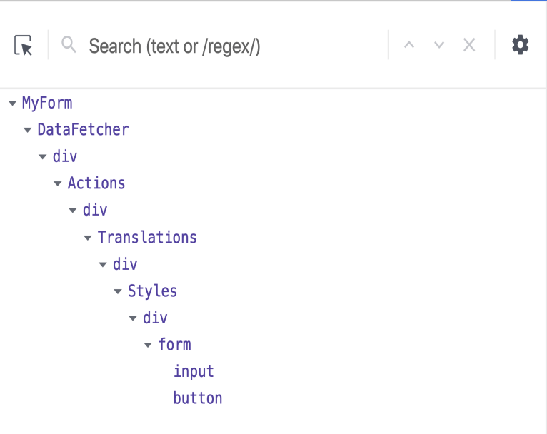 同样地,高阶组件也会有这个问题,但由于装饰器的简洁性,没有 render props 看起来那么可怕。除此之外,他们俩还有另一个问题,那就是组件嵌套过深之后,会给调试带来很大的麻烦。这个是 render props 中组件嵌套在 React 开发者工具中的表现。
