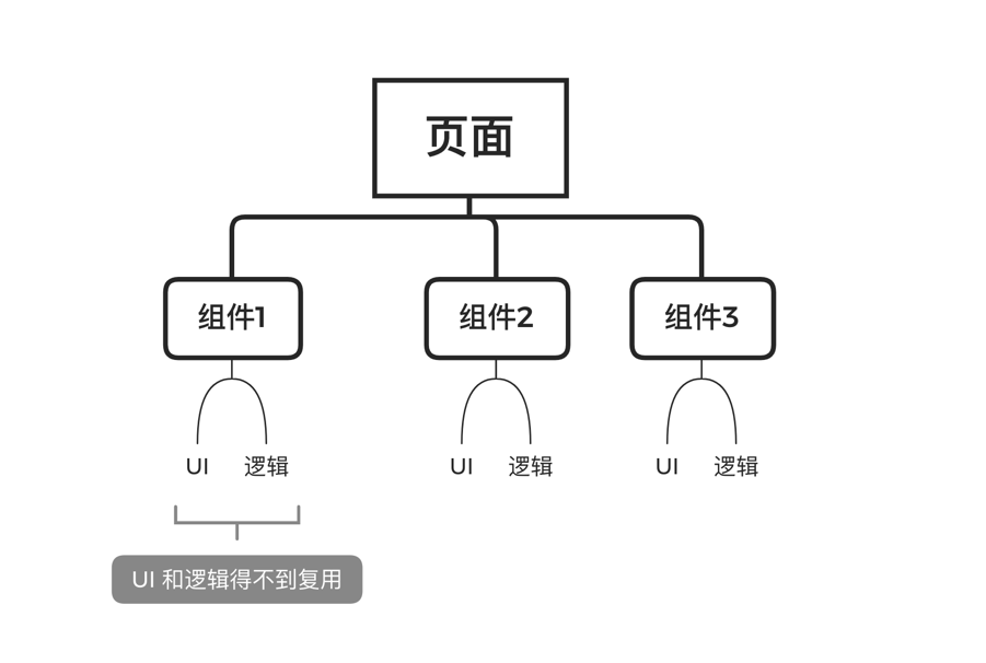 一般来说,组件是 UI 和逻辑,但是逻辑这一层面却很难复用。对用户而言,组件就像一个黑盒,我们应该拿来即用。但当组件的样式或者结构不满足需求的时候,我们只能去重新实现这个组件。