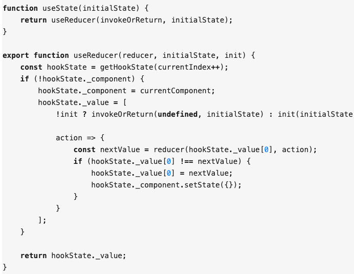 这样你再来看下面 useState 和 useReducer 的源码就会更容易理解一些。