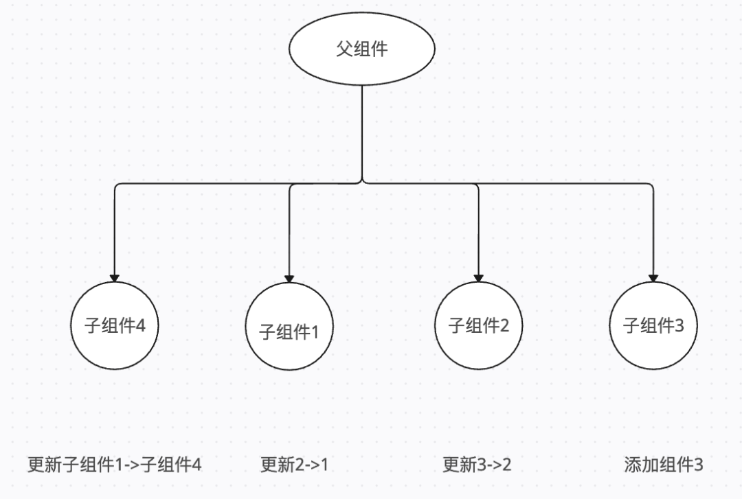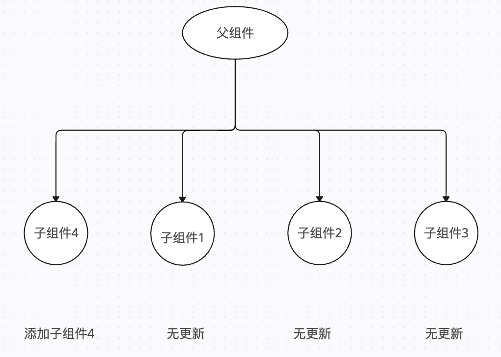 如果是给 key 指定一个唯一且稳定的 id,则 render 过程如下,就只会发生一次添加操作,而其他组件都没有更新: