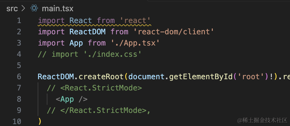 npm i --save-dev @types/babel__standalone去掉 index.css 和 StrictMode: