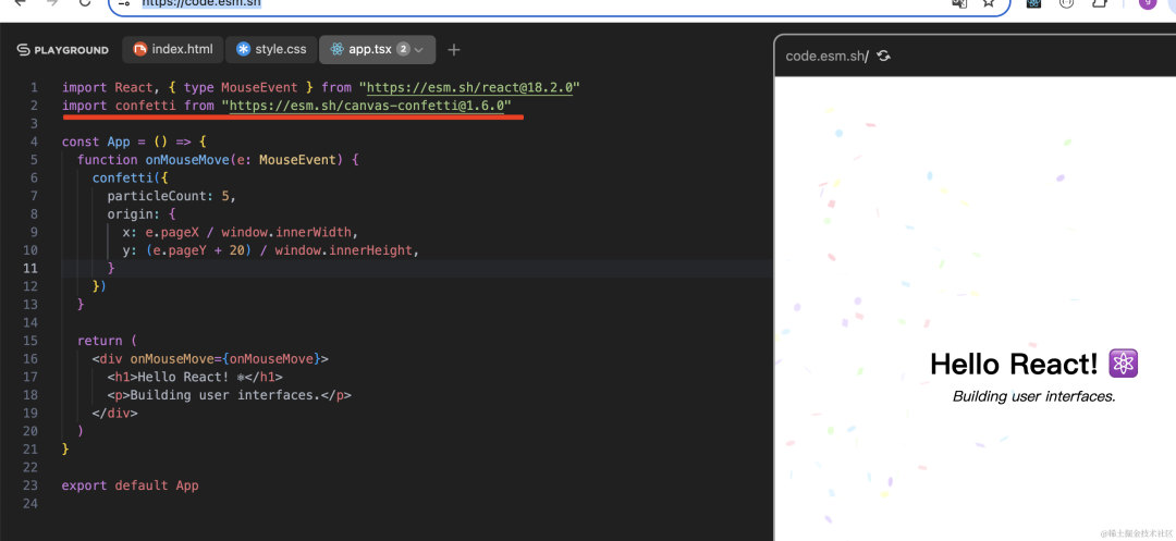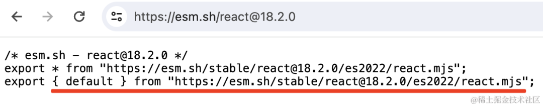这里的 esm.sh 就是专门提供 esm 模块的 CDN 服务: