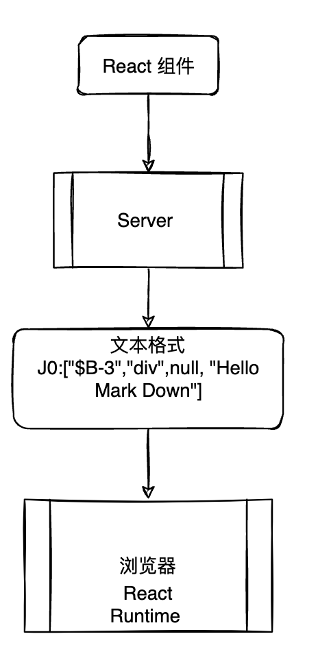 Server Component 在服务端渲染好之后会将一段类 React 组件 json 数据发送给浏览器,浏览器中的 React Runtime 接收到这段 json 数据 后,将它渲染成 HTML。