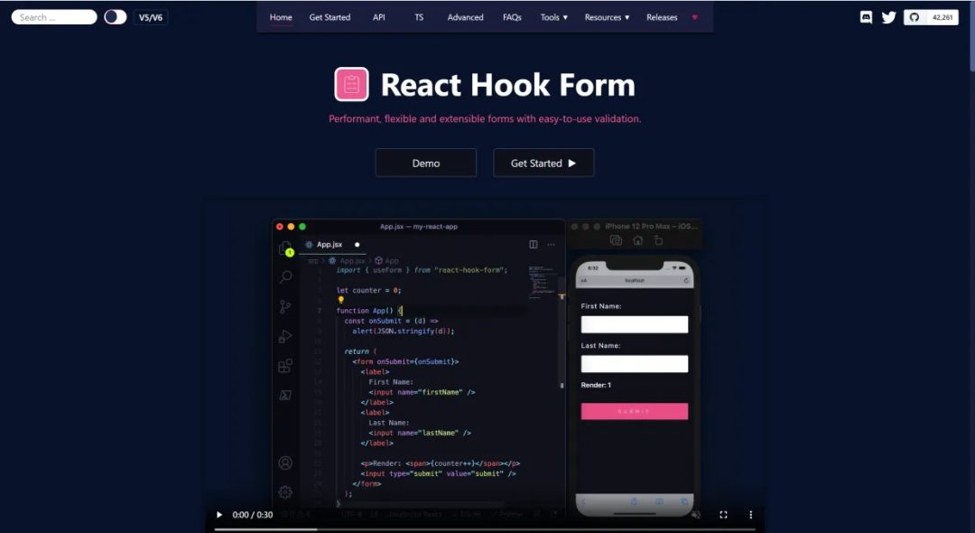 过去,在 React 中处理表单让人头疼,但有了 React Hook Form[18] 就不一样了。它专为速度而生,搭配 Zod[19] 进行表单验证易如反掌,与 TypeScript 配合默契,代码包小,API 设计直观易懂。
