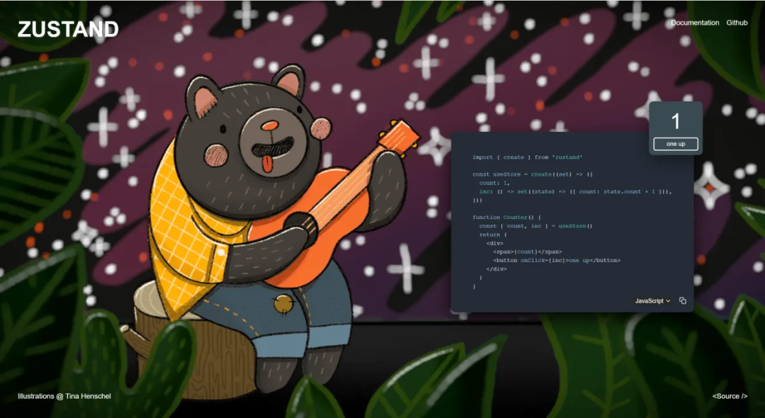 在客户端状态管理方面,Zustand[10] 是不二之选。零样板代码,代码包极小,API 简单却功能强大,容易上手。只需几行代码,你就能创建一个状态存储,非常便捷。