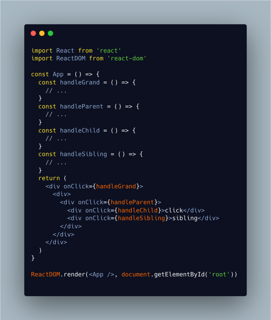 React 事件的命名采用小驼峰式(camelCase),而不是纯小写。以 click 事件为例,冒泡阶段用