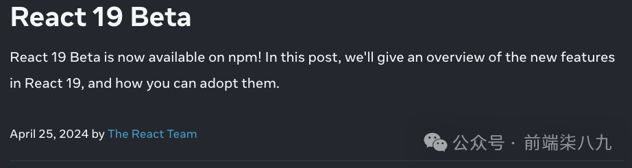 就在2024/04/25,我们可以通过npm install react@beta在本地安装React19了。