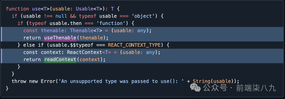 React19 将引入一个新的 hook,名为 use()。这个 hook 将简化我们如何使用 promises、async 代码和 context。