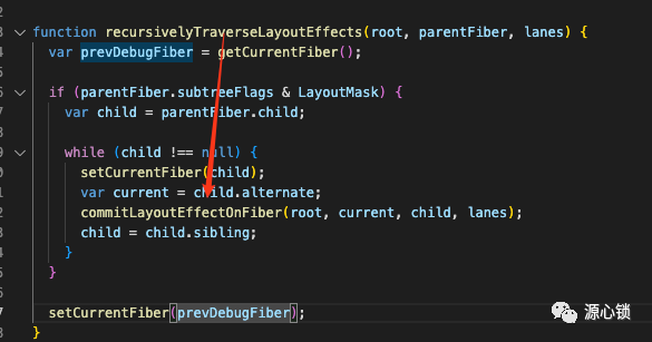 (commitLayoutEffectOnFiber 和 recursivelyTraverseLayoutEffects 递归调用)