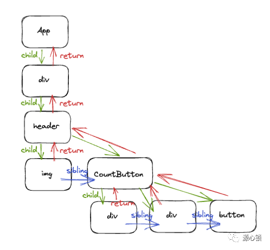 sibling:指向右边的兄弟节点 Fiber