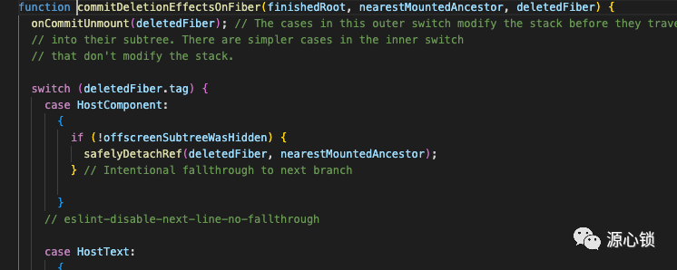 上边的部分负责从Fiber.deletions中取出具体的deletions执行commitDeletionEffects,后边则是向下遍历节点递归执行commitMutationEffectsOnFiber。