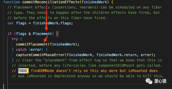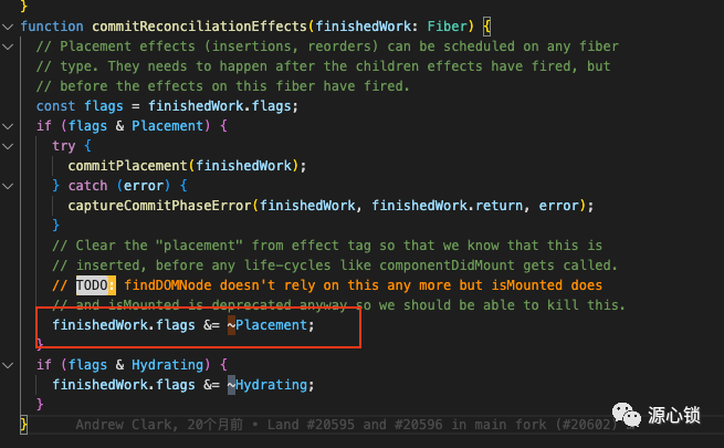 那么作用是什么呢?其实也很容易从函数上下文分析出来,对于图中这个例子,react 通过~运算符与&运算符的结合,从 flags 中删除了Placement这个 flag。