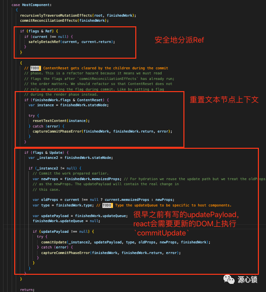 我们只说HostComponent的逻辑,只有真实节点会走到这里,另外两个 tagHostRoot,HostPortal,相比 HostComponent 只是缺少了ContextReset的内容。