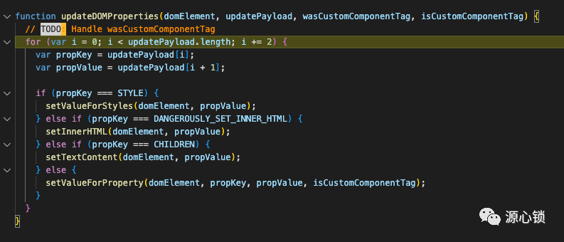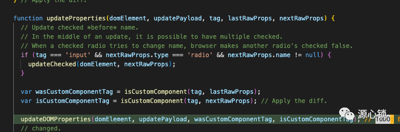 function commitUpdate(domElement, updatePayload, type, oldProps, newProps, internalInstanceHandle) { // Apply the diff to the DOM node. updateProperties(domElement, updatePayload, type, oldProps, newProps); // Update the props handle so that we know which props are the ones with // with current event handlers. updateFiberProps(domElement, newProps);}image-20220914000716411