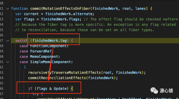 commitMutationEffectsOnFiber是一个 368 行的函数,它会根据Fiber.tag和Fiber.flags走不同的 Mutation 逻辑