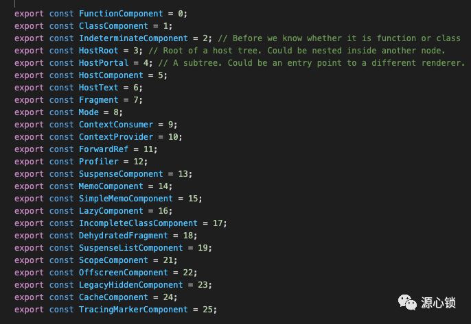 tag:Fiber 节点对应组件的类型,包括了 Funtion、Class 等