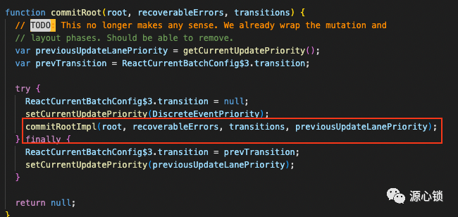 var rootDidHavePassiveEffects = rootDoesHavePassiveEffects; //上边执行useEffect时会标记rootDoesHavePassiveEffects=true //这里会对相关内容进行清除 if (rootDoesHavePassiveEffects) { rootDoesHavePassiveEffects = false; rootWithPendingPassiveEffects = root; pendingPassiveEffectsLanes = lanes; } else { releaseRootPooledCache(root, remainingLanes); } ... //和react-refresh-runtime相关的模块 onCommitRoot(finishedWork.stateNode, renderPriorityLevel); ... // 确保root有一个新的调度,我想找机会试试把这句话注释 ensureRootIsScheduled(root, now()); // 一些错误处理 if (recoverableErrors !== null) { var onRecoverableError = root.onRecoverableError; for (var i = 0; i < recoverableErrors.length; i++) { var recoverableError = recoverableErrors[i]; var componentStack = recoverableError.stack; var digest = recoverableError.digest; onRecoverableError(recoverableError.value, { componentStack: componentStack, digest: digest }); } } if (hasUncaughtError) { hasUncaughtError = false; var error$1 = firstUncaughtError; firstUncaughtError = null; throw error$1; } // React注释:请再次阅读,因为被动效果可能会更新它 if (includesSomeLane(pendingPassiveEffectsLanes, SyncLane) && root.tag !== LegacyRoot) { flushPassiveEffects(); } // 无限重渲染的计数 remainingLanes = root.pendingLanes; if (includesSomeLane(remainingLanes, SyncLane)) { if (root === rootWithNestedUpdates) { nestedUpdateCount++; } else { nestedUpdateCount = 0; rootWithNestedUpdates = root; } } else { nestedUpdateCount = 0; } // If layout work was scheduled, flush it now. // 执行一些同步任务,这样无需等待在下一次循环的时候进行,这里可以参考ensureRootIsScheduled flushSyncCallbacks(); return null;那么至此,commit 阶段算已经完成了。