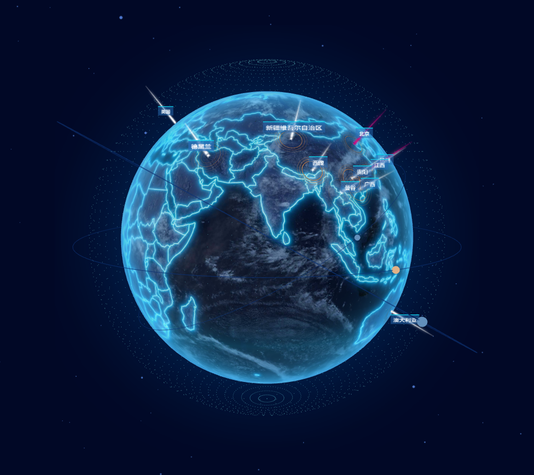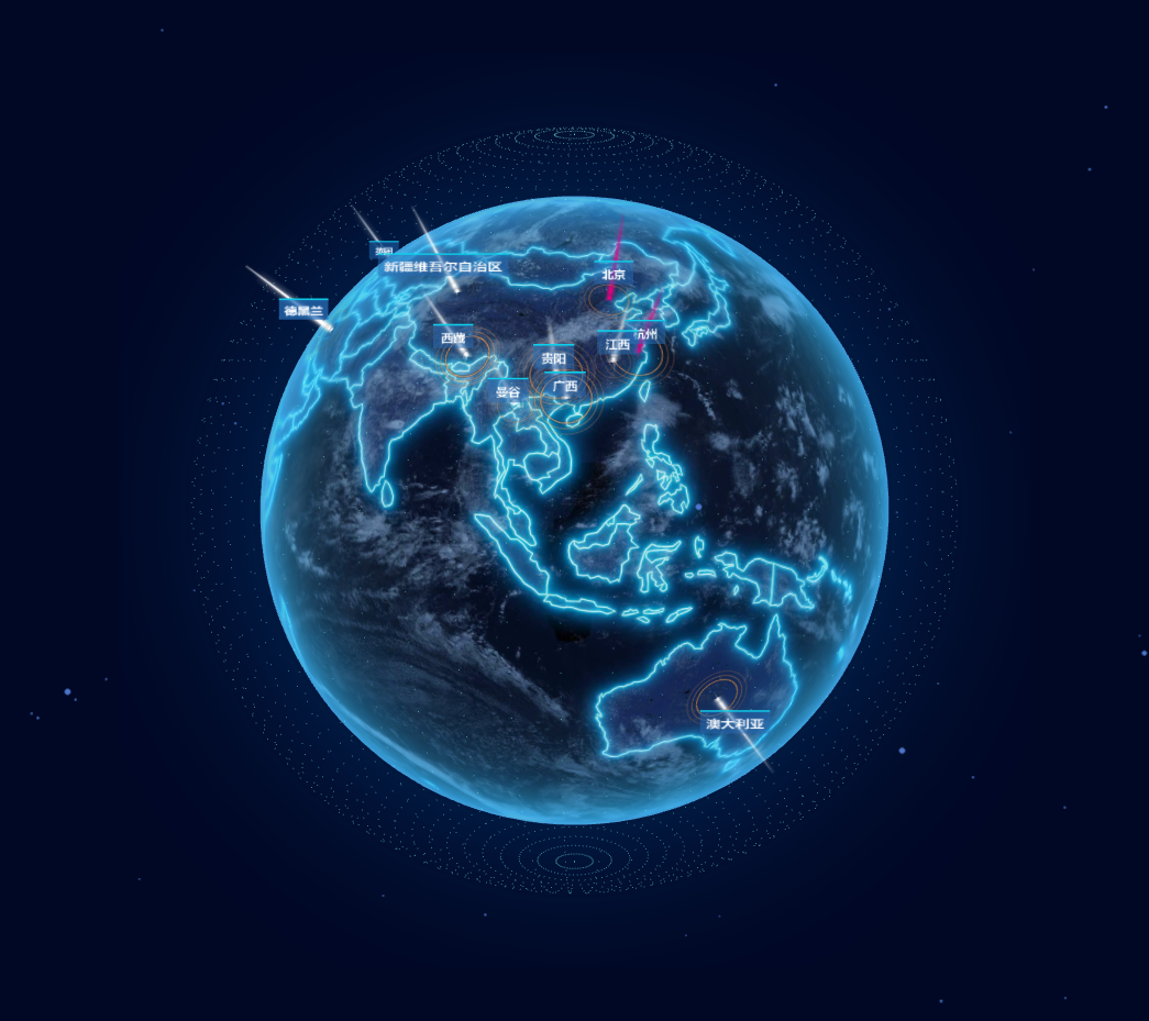 this.earth.add(sprite);地球上的标签是通过 html2canvas 插件将 html 转换成贴图,贴到精灵片上。