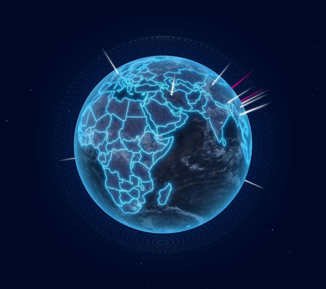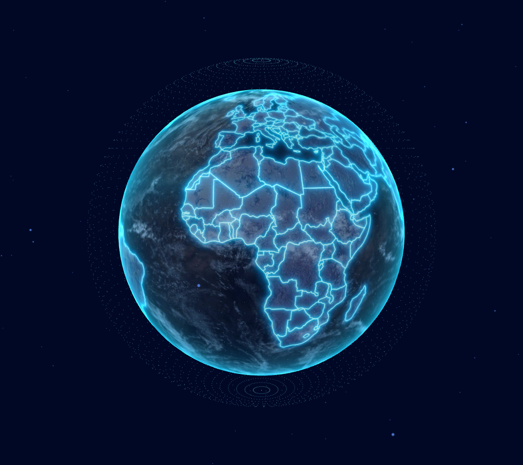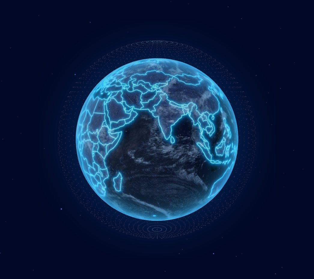 earth: 创建一个地球 mesh,并赋予 ShaderMaterial 材质和贴上地球贴图,之后可以通过着色器动画实现地球扫光效果。