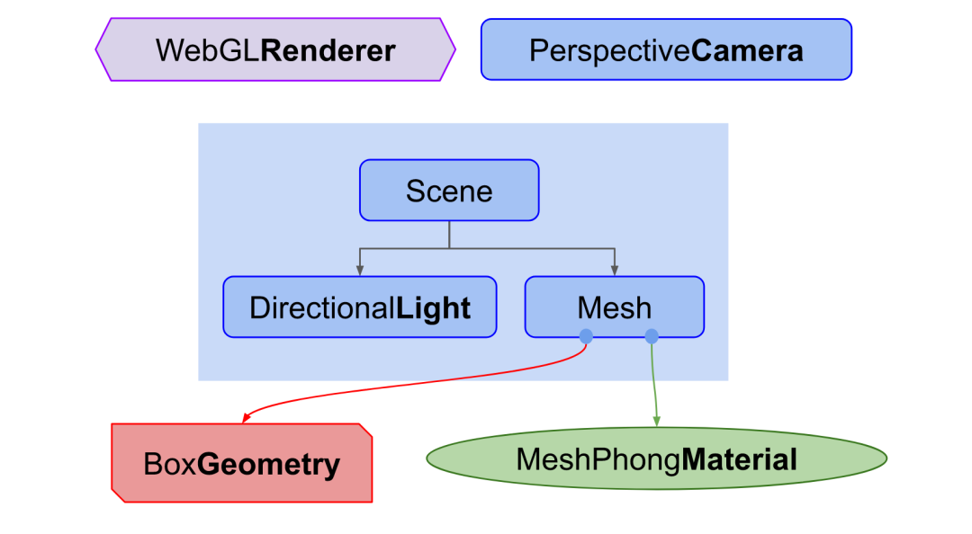 一个最基础的 Three.js 程序包括渲染器(Renderer)、场景(Scene)、相机(Camera)、灯光(灯光),以及我们在场景中创建的物体(Earth)。