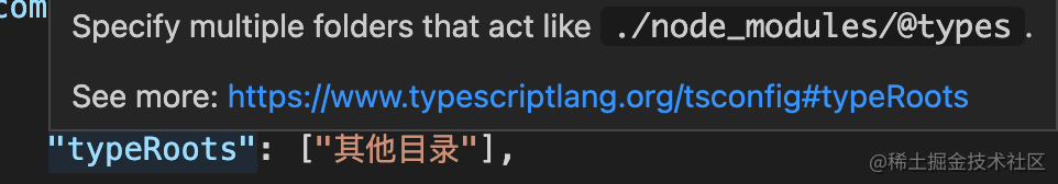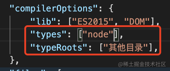 可以指定加载 @types 目录下的哪些包,还可以修改查找 @types 包的目录(默认是 node_modules/@types):