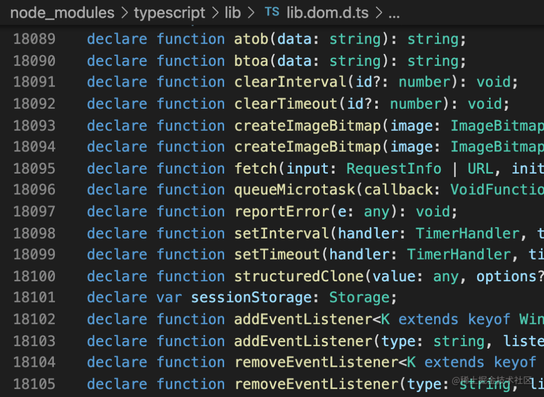 TypeScript 包下有个 lib 目录,里面有一堆 lib.xx.d.ts 的类型声明文件,这就是 TS 内置的一些类型声明。