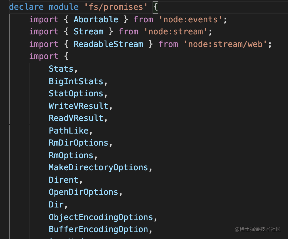 因为这些只是声明类型,而没有具体的 JS 实现,TS 就给单独设计了一种文件类型,也就是 d.ts, d 是 declare 的意思。