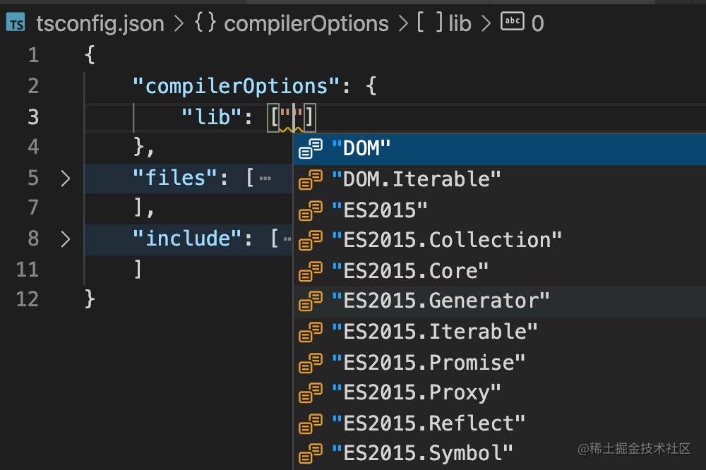 lib:内置的类型声明,包含 dom 和 es 的,因为这俩都是有标准的。