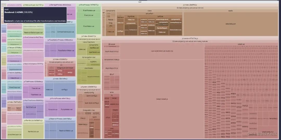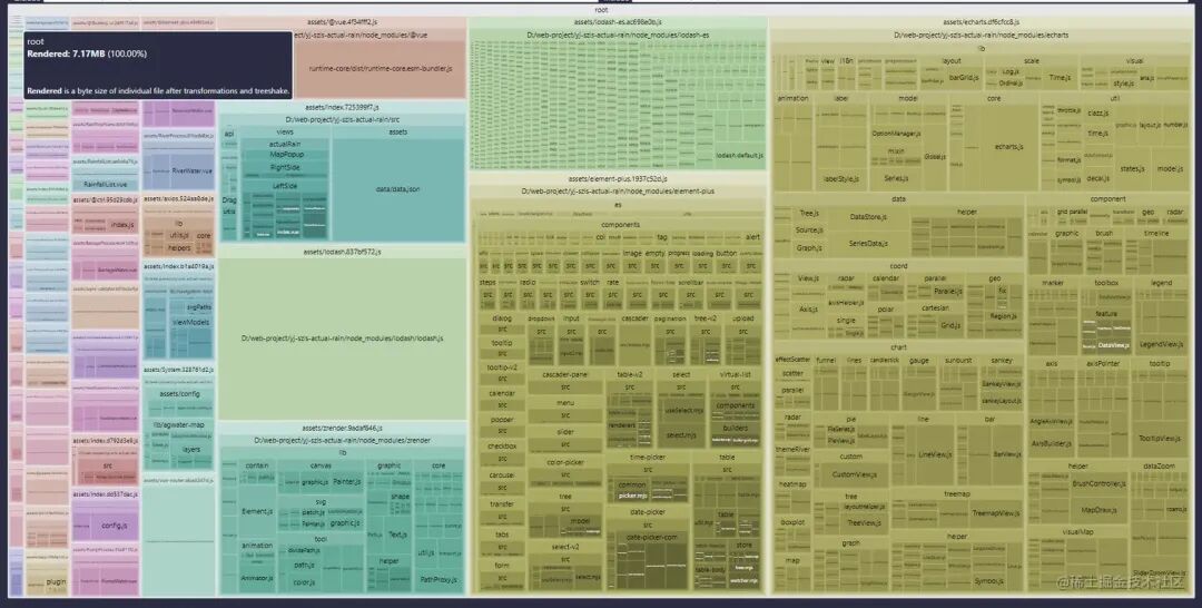 bash复制代码npm i rollup-plugin-visualizer -Djs复制代码import { visualizer } from 'rollup-plugin-visualizer'js复制代码plugins: [ visualizer({open: true})]arduino复制代码npm run build // 打包结束后会出现下图image.png