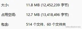 到了这一步,整个文件夹已经完全瘦身了。从一开始的 30MB 到现在的 11.8MB 了。我们在项目里面放置了许多 json 数据 (因为业务原因不能上传到服务器),json 数据已经占了差不多 5、6mb 的原因,所以是一个单纯的项目并没有这么大。