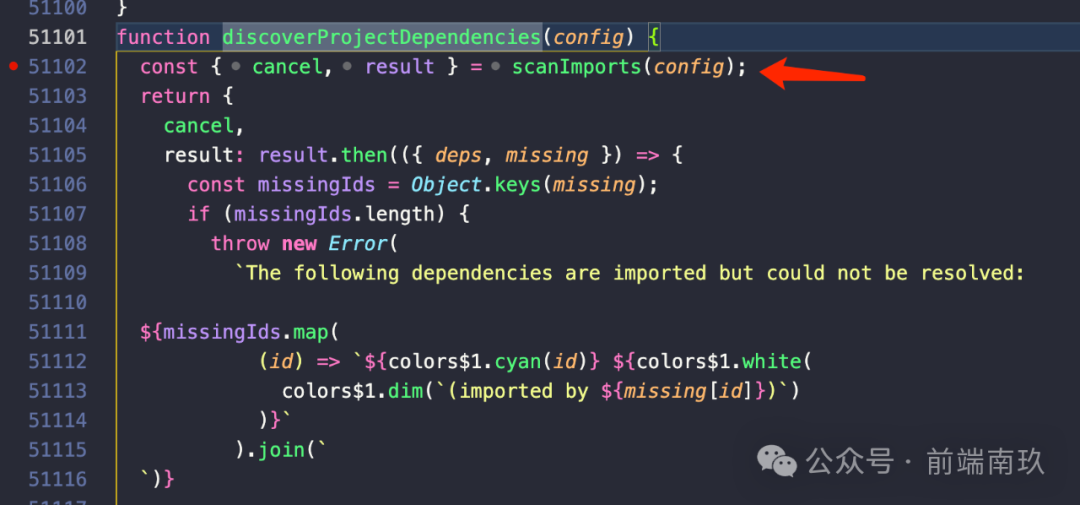 在这里会执行createDepsOptimizer方法,再接着找到定义createDepsOptimizer的地方
