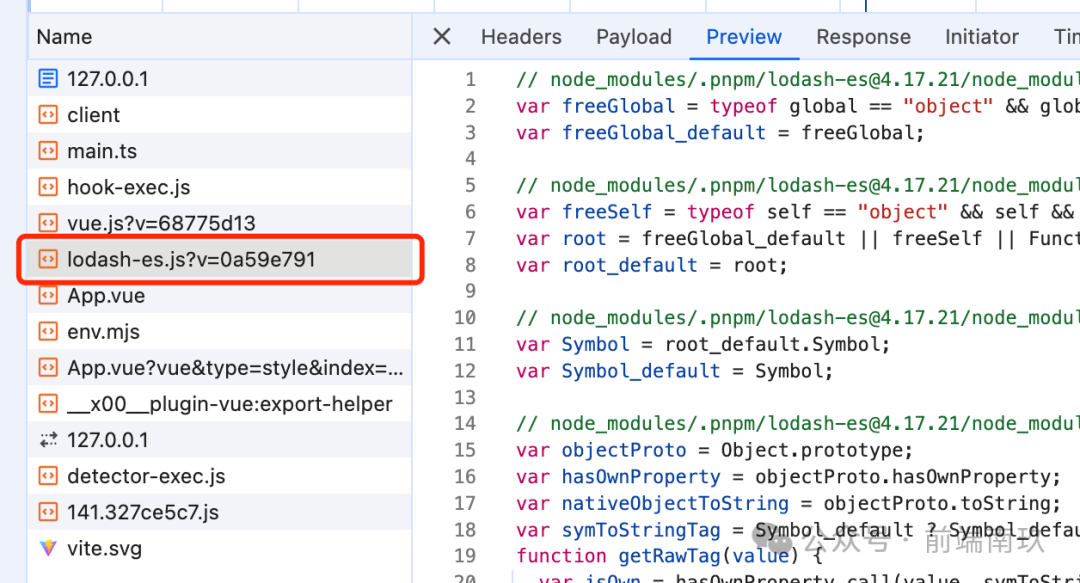 vite 通过将 lodash-es 预构建成单个模块,只需要发起一个 HTTP 请求!可以很大程度地提高加载性能