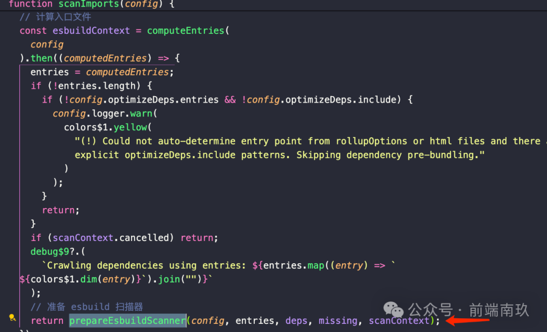 最终会返回一个prepareEsbuildScanner方法