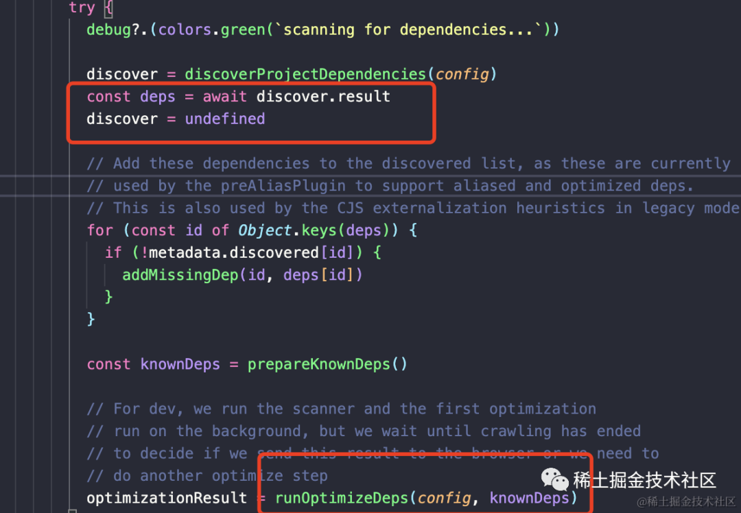 然后将 prepareKnownDeps 返回的 knownDeps 交给 runoptimizeDeps 进行处理: