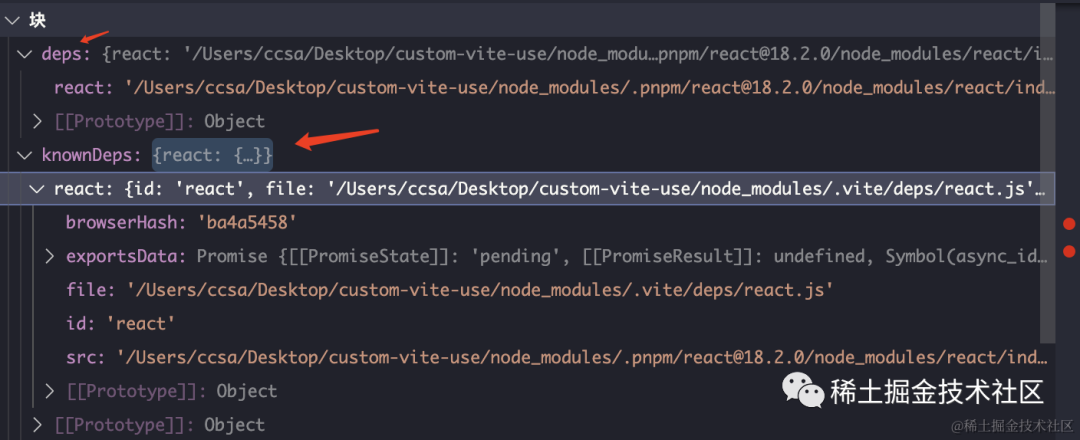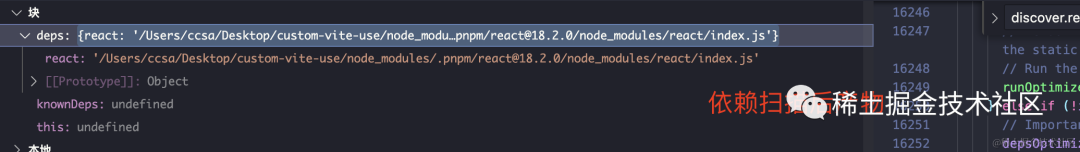 首先 discoverProjectDependencies 寻找到的 react 实际地址是一个