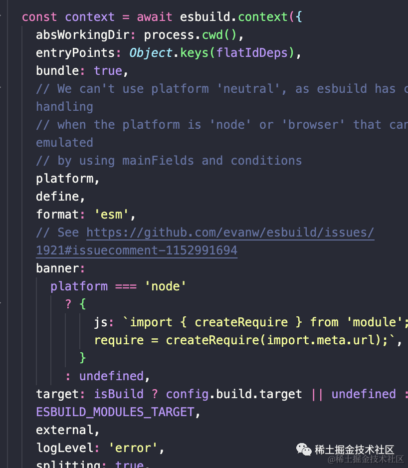 接下来我们需要做的,正是对于刚刚获取到的 deps 对象中的第三方模块进行构建输出经过预构建后的文件以及一份资产清单 _metadata.json 文件。