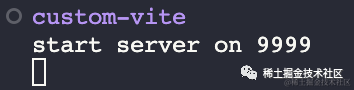 这样,最终就达到了我们想要的结果。当我们在 vite-use(测试项目中) 调用 custom-vite 命令,会发现控制台中会打印: